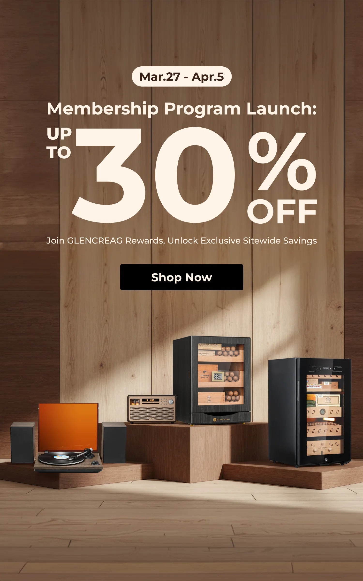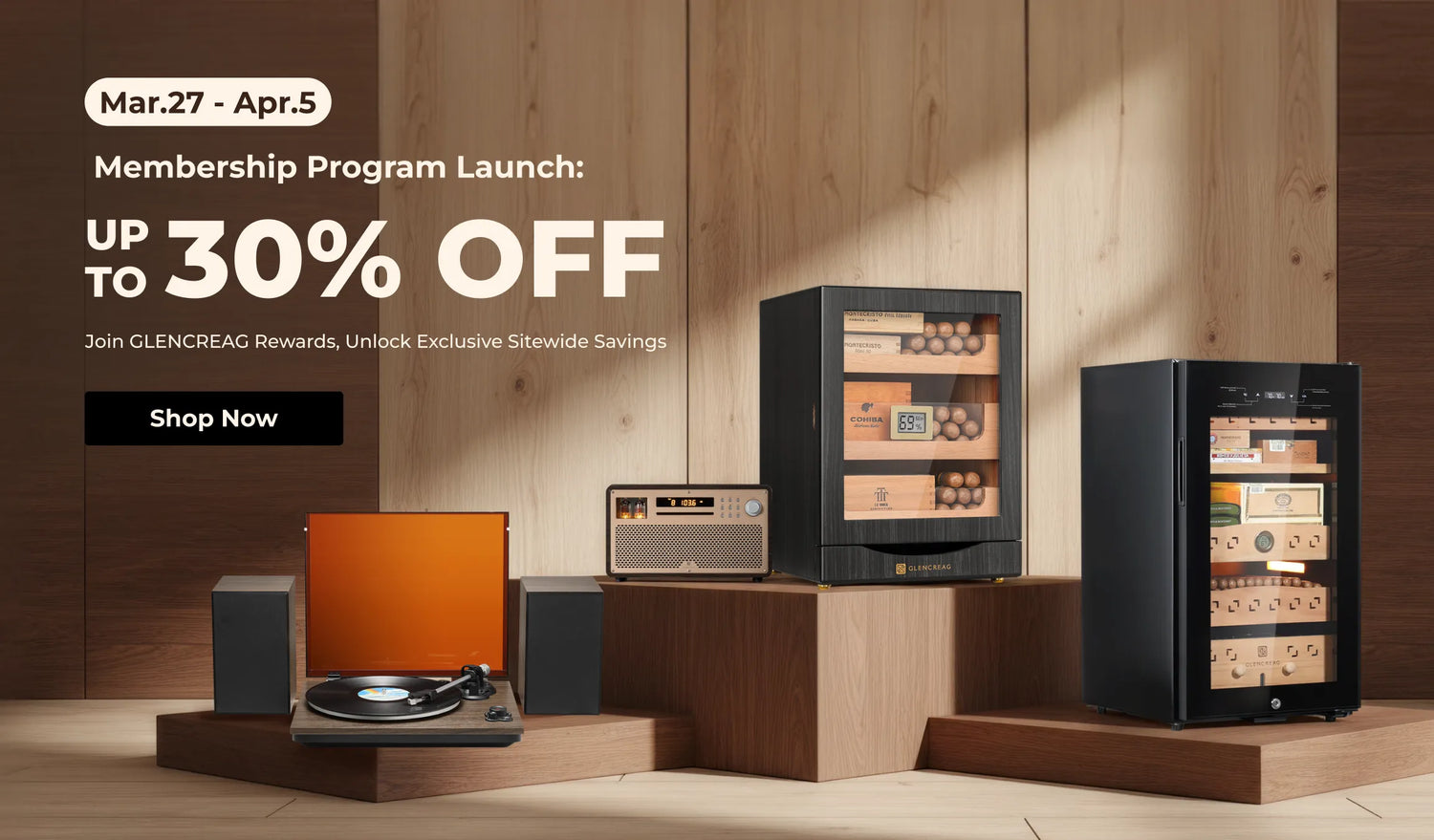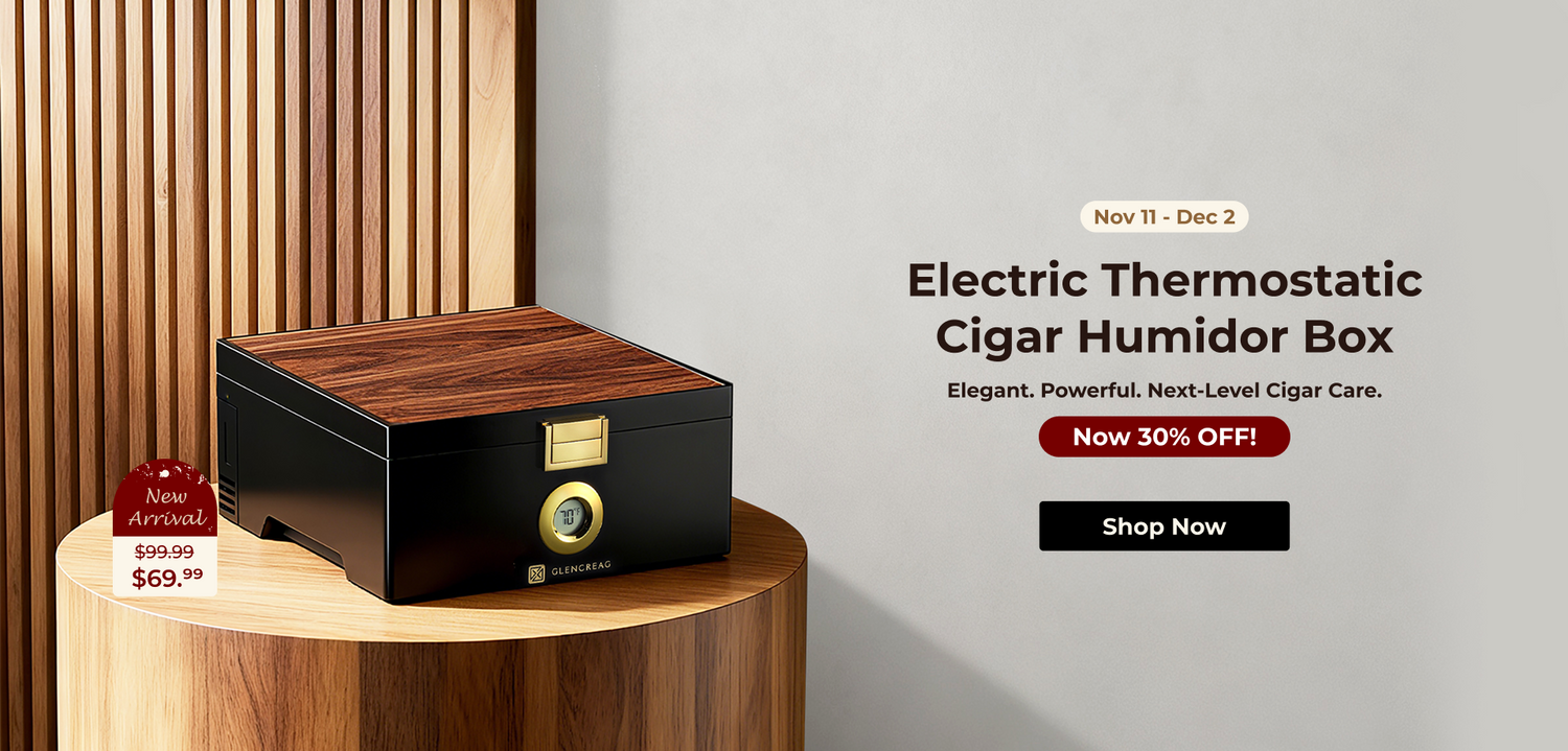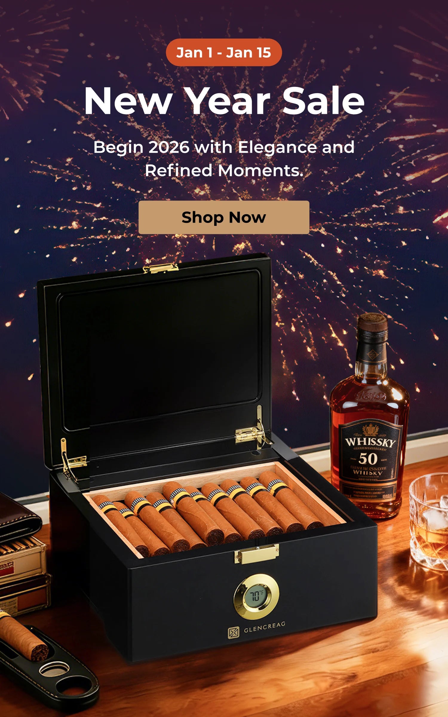 Available in 550 and 900-cigar capacities, the GLENCREAG Cigar Humidor Cabinet combines advanced compressor cooling, patented ammonia removal, and Spanish cedar drawers to keep cigars perfectly aged and flavorful.