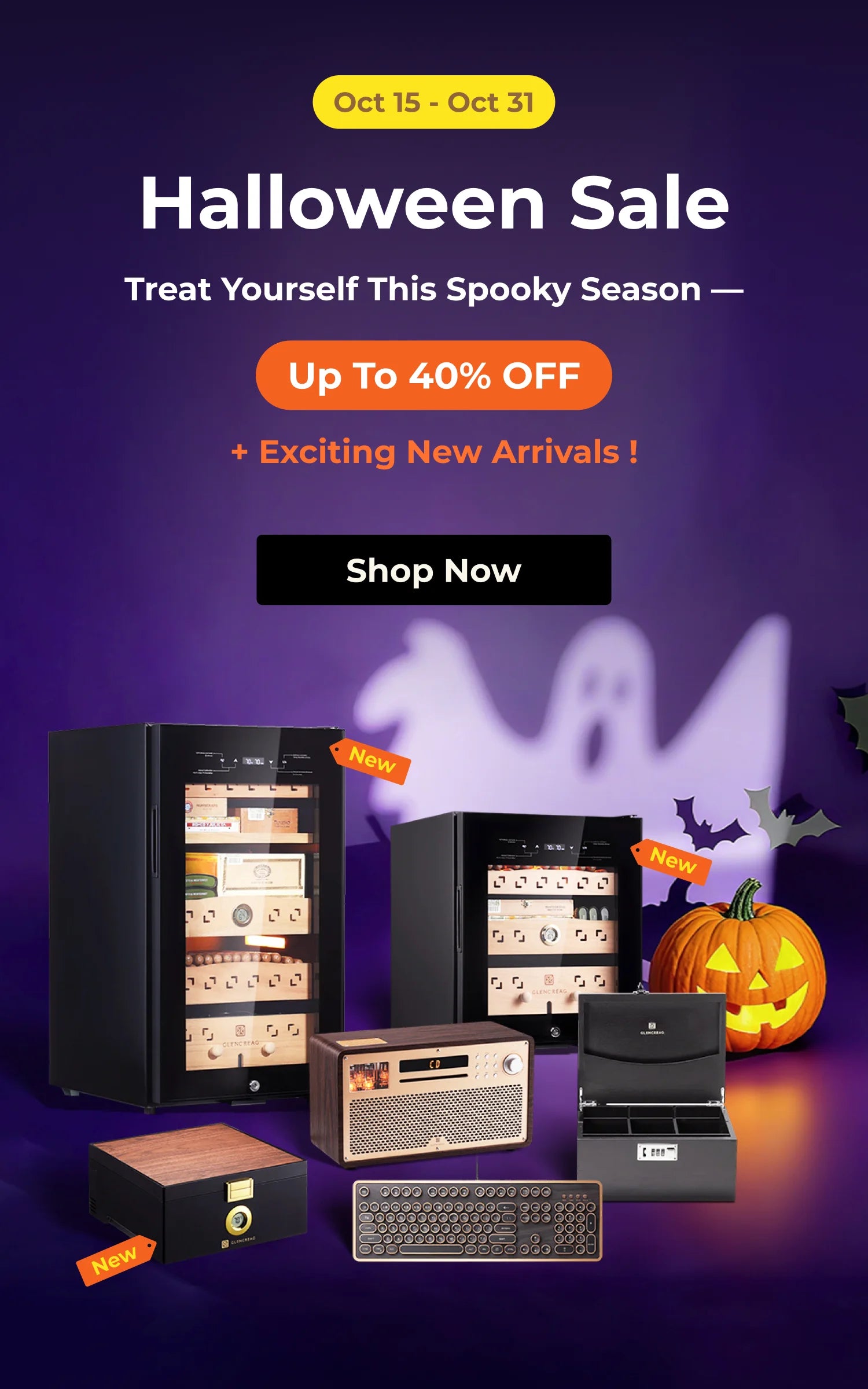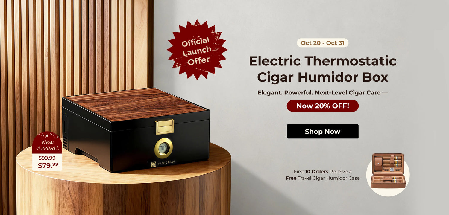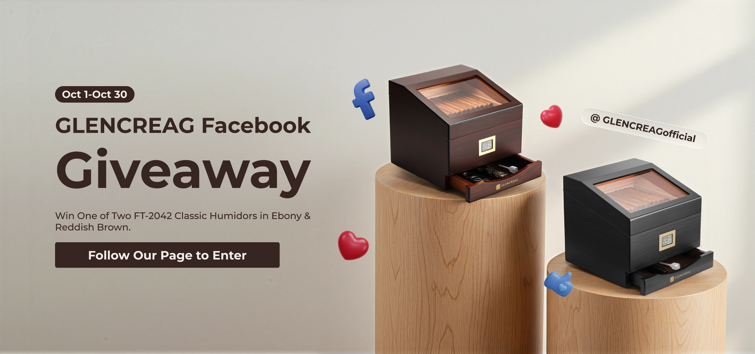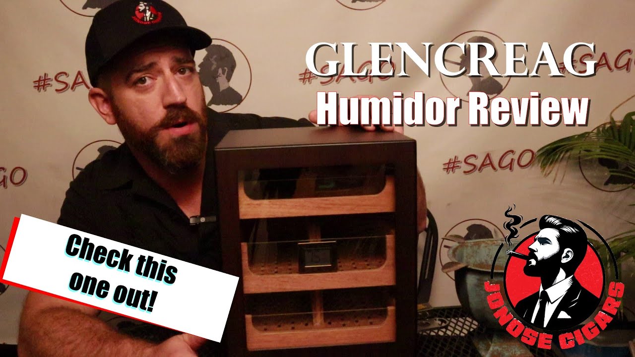 Available in 550 and 900-cigar capacities, the GLENCREAG Cigar Humidor Cabinet combines advanced compressor cooling, patented ammonia removal, and Spanish cedar drawers to keep cigars perfectly aged and flavorful.