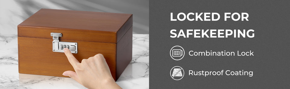 The original password is 0-0-0. Once the box is opened, press and hold the button inward until the desired code is set on the lock wheel, then release the button.