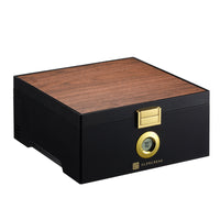 b. Once the temperature value on the display begins to flash, calibrate the hygrometer by pressing the +% and -% buttons on the back and adjusting the humidity value to 75%.