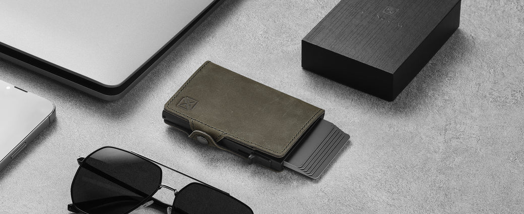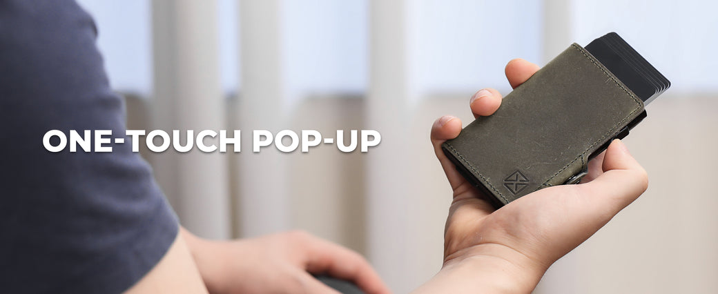 Men's Pop-Up Slim Wallet, Genuine Leather (Army Green)