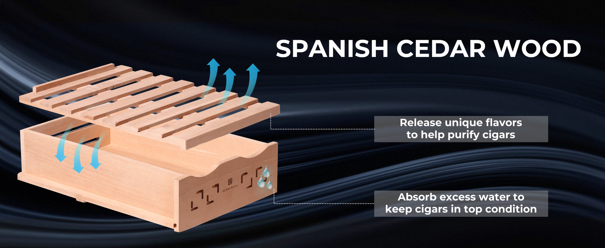 No, the amber LED lighting is low-heat and designed not to emit UV rays, ensuring it won’t affect your cigars’ condition or flavor.