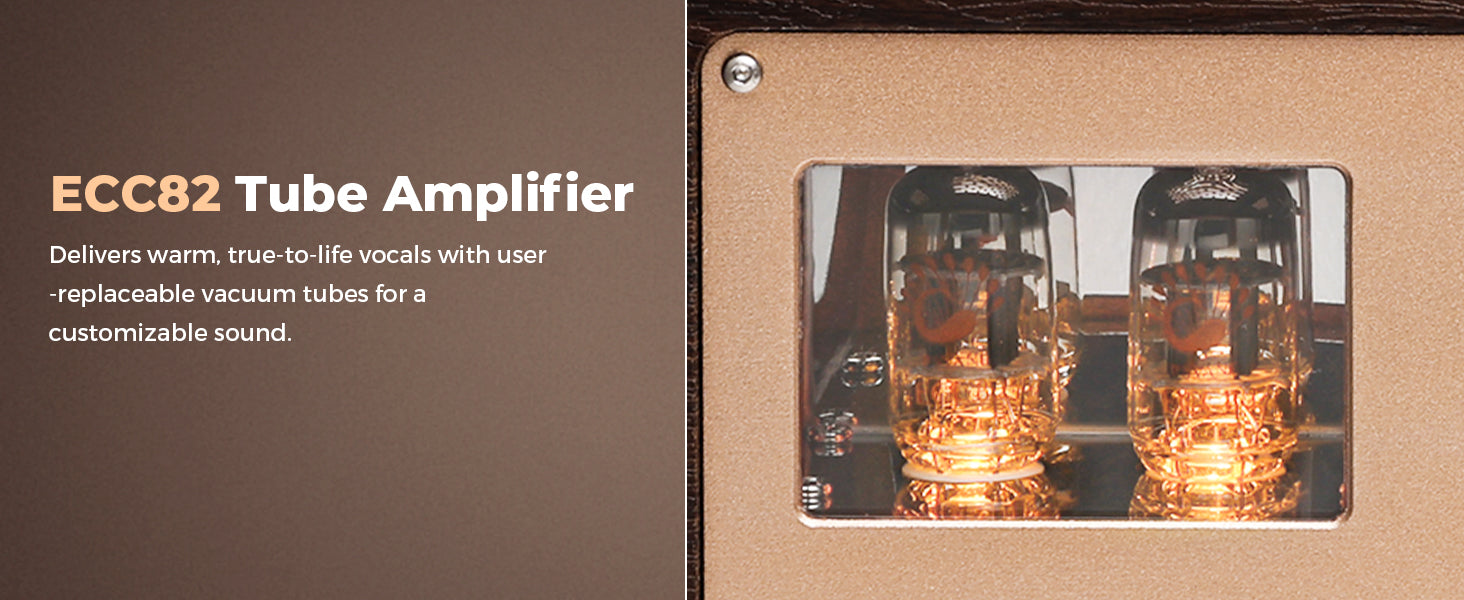 【Professional ECC82 Tubes – Swappable】Dual ECC82 tubes for warm mids & crisp highs. Compatible with ECC82, 12AU7, B749 for customizable tuning.
